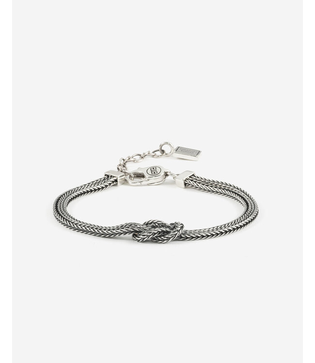 Das Barbara Mini Knot Armband ist ein wunderschönes und raffiniertes Schmuckstück, mit einem zentralen Knoten-Element im charakteristischen **Barbara-Webmuster**. Dieses handgefertigte Armband ist vollständig aus recyceltem 925er Sterlingsilber gefertigt und strahlt zeitlose Eleganz aus. Eine subtile, aber stilvolle Ergänzung für jedes Outfit.