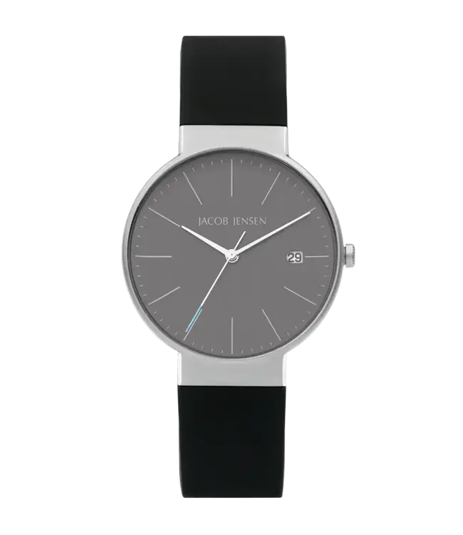 TITANIUM SAPPHIRE -TIMELESS NORDIC- 182 37 mm von Jacob Jensen. Quartz, 37 mm, 5 ATM / 50 Meters / 165 Feet (5 ATM), Silicone, Black. Lesen Sie mehr.