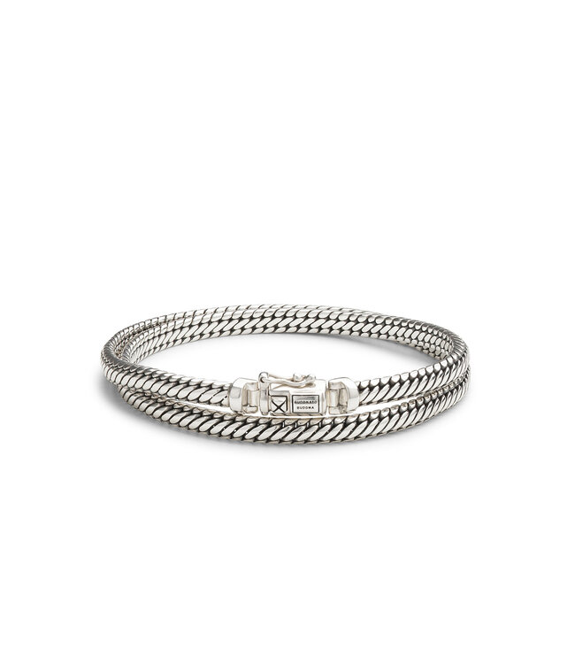 The Ben Mini Double is a stunning variation of the world-famous Ben link. This handcrafted silver bracelet features two subtle strands that together create a powerful statement. Made from high-quality 925 sterling silver, this piece combines expert craftsmanship with a timeless, bold aesthetic.