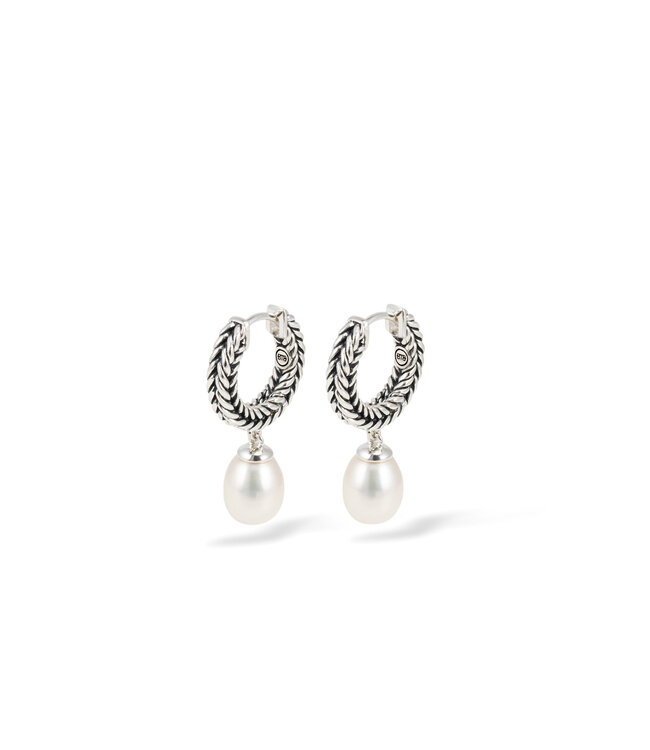 These timeless silver hoops blend natural white freshwater pearls with the iconic Barbara pattern – perfect for an elegant touch to any look.