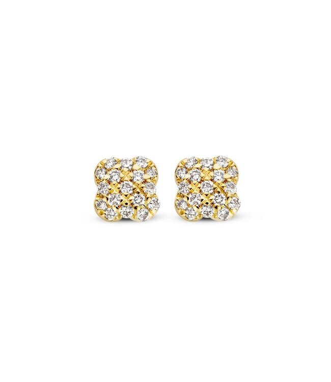 Geelgouden oorstekers in bloemvorm, gezet met diamant.