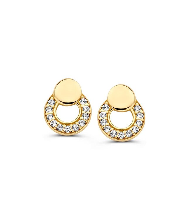 Geelgouden oorstekers met zirkonia's.