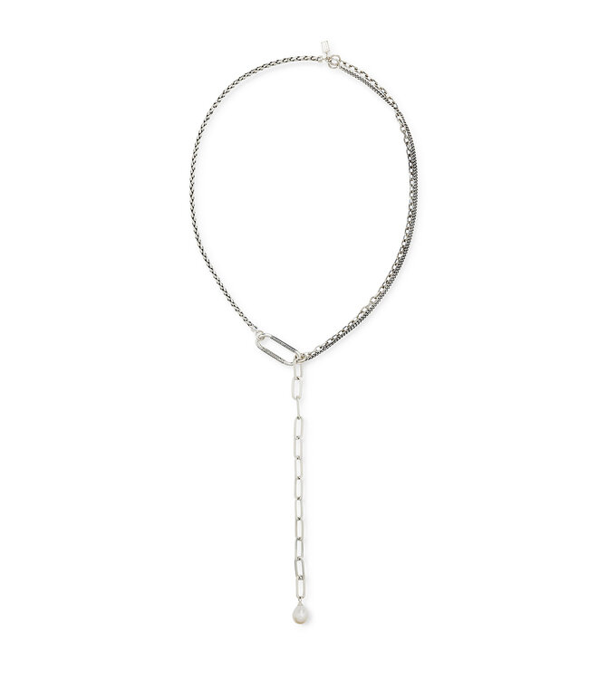Discover the Multi-Link Y-necklace George in silver. An iconic design by Buddha to Buddha. This Y-shaped necklace combines bold links with refined elegance and reflects timeless craftsmanship.