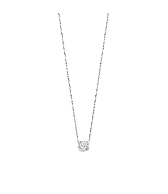 De TI SENTO Ketting 34104ZI - Zilver platina verguld, Zirkonia van TI SENTO - Milano combineert een verfijnde uitstraling met een tijdloos ontwerp. Ontdek dagelijkse verfijning met dit TI SENTO zilveren hanger-collier 34104ZI. Een kussengeslepen witte zirconia, omlijst door een fijne pavé van briljant geslepen stenen, vormt het stralende middelpunt van dit elegante ontwerp. De hanger is naadloos geïntegreerd in een fijn zilveren collier en creëert zo een zuiver, sierlijk silhouet dat subtiel op het sleutelbeen rust. Vervaardigd uit hoogwaardig 925 sterling zilver en afgewerkt met platinakleurige rhodium biedt dit collier langdurige glans en weerstand tegen verkleuring. Met een formaat van 8 mm maakt het middelpunt een verfijnde maar opvallende indruk, ideaal om zakelijke outfits een vleugje fonkeling te geven of je favoriete sieradenstack te verrijken. Dit tijdloze collier vormt de brug tussen solitaire sieraden en halo-ontwerpen, waardoor het een veelzijdige keuze is voor cadeaus, bruidsstyling of dagelijks gebruik. Nikkelvrij en hypoallergeen, het garandeert blijvend comfort en verfijnde elegantie in elk moment.